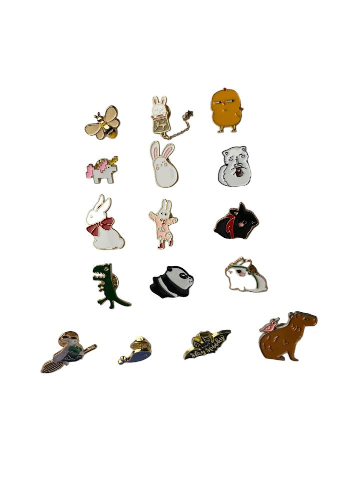 These pins are perfect to add to any piece of clothing, lanyard, or bag. Add a little pop of color to your outfit while also adding a cute little creature to make you and others smile! Each pin is unique with their own specific style and design. Choose from our 16 options (numbered in a picture)
