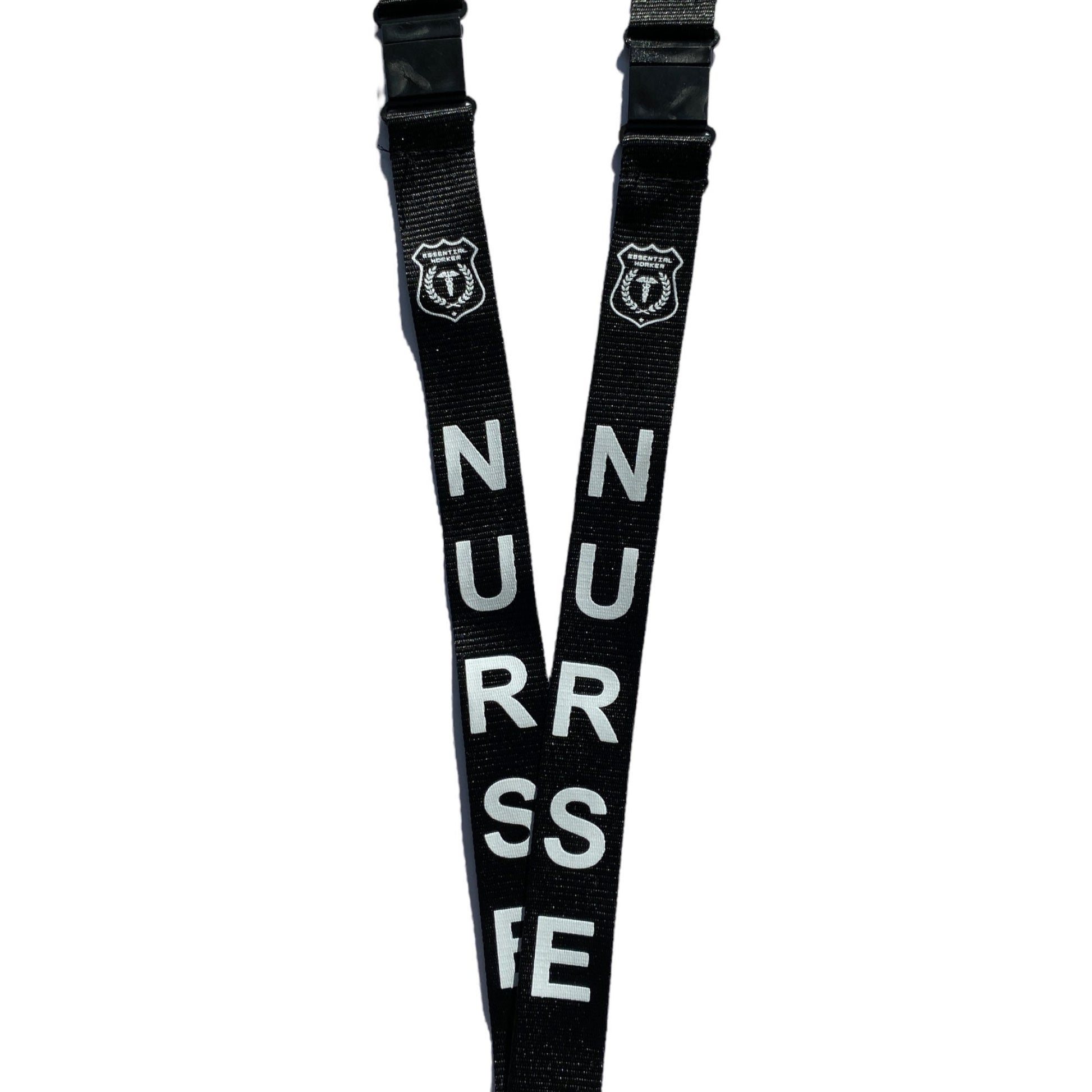 This longer lanyard comes with a metal clasp at the bottom to hold identification, hospital cards, educational nursing cards, etc. It has 2 breakaways for safety. The bottom of the lanyard has a detachable portion and you can remove the metal clasp portion. With large lettering all over the lanyard, others at your work can know your position and you can show that you are proud to be a nurse!