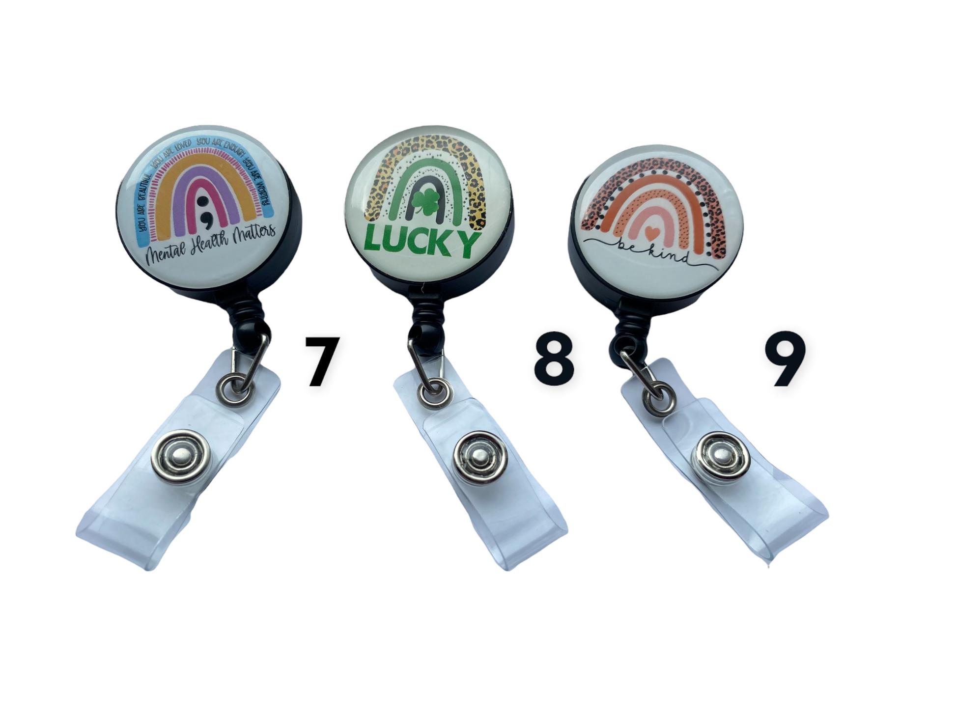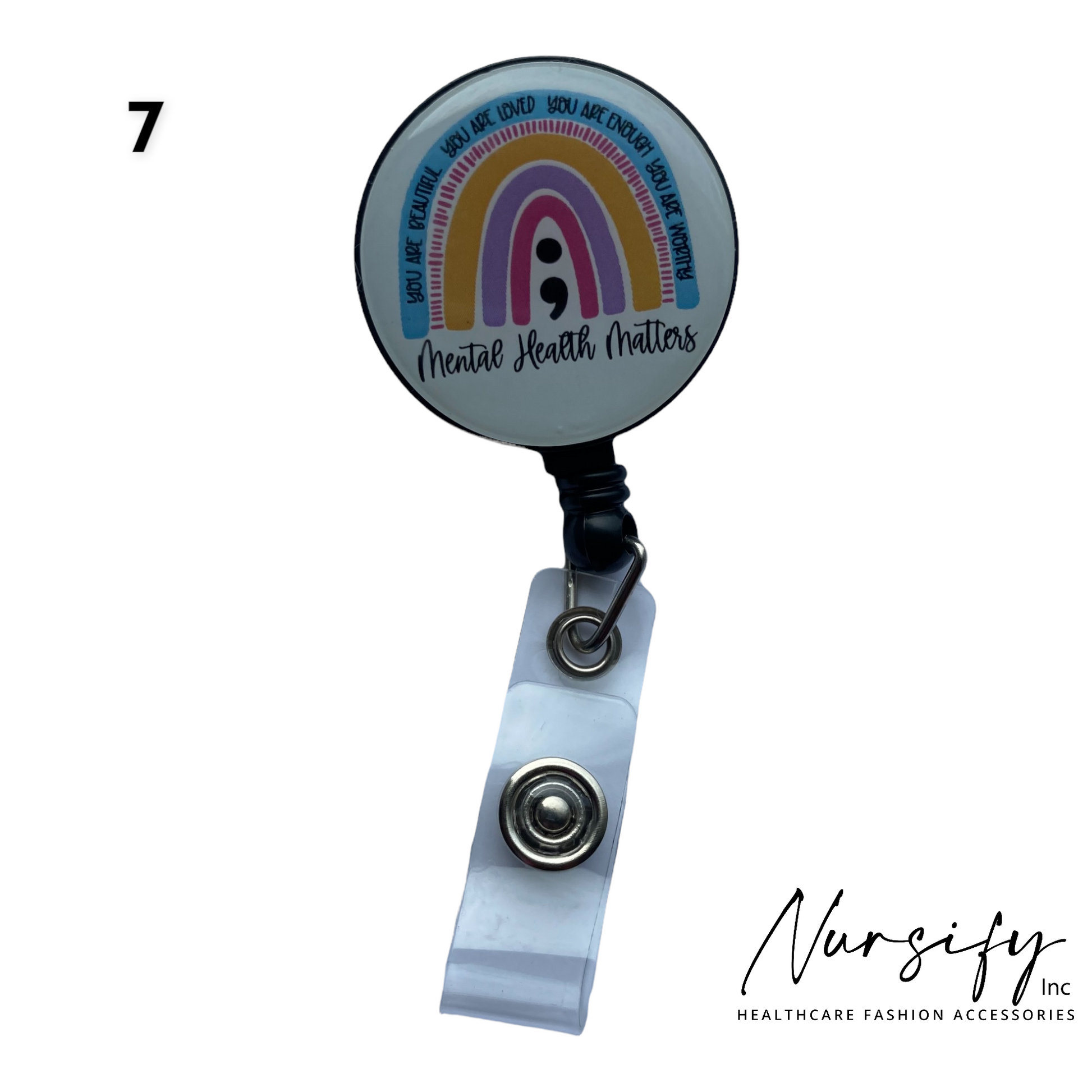 10 different Nurse Badge Reels with retractable cords and swivel back clip. Coordinate with your uniform and feel organized every shift. Look good, feel good is so true. You can pick a few or take them all. Positive messages to show your support of mental health, pride, autism and positive minds.